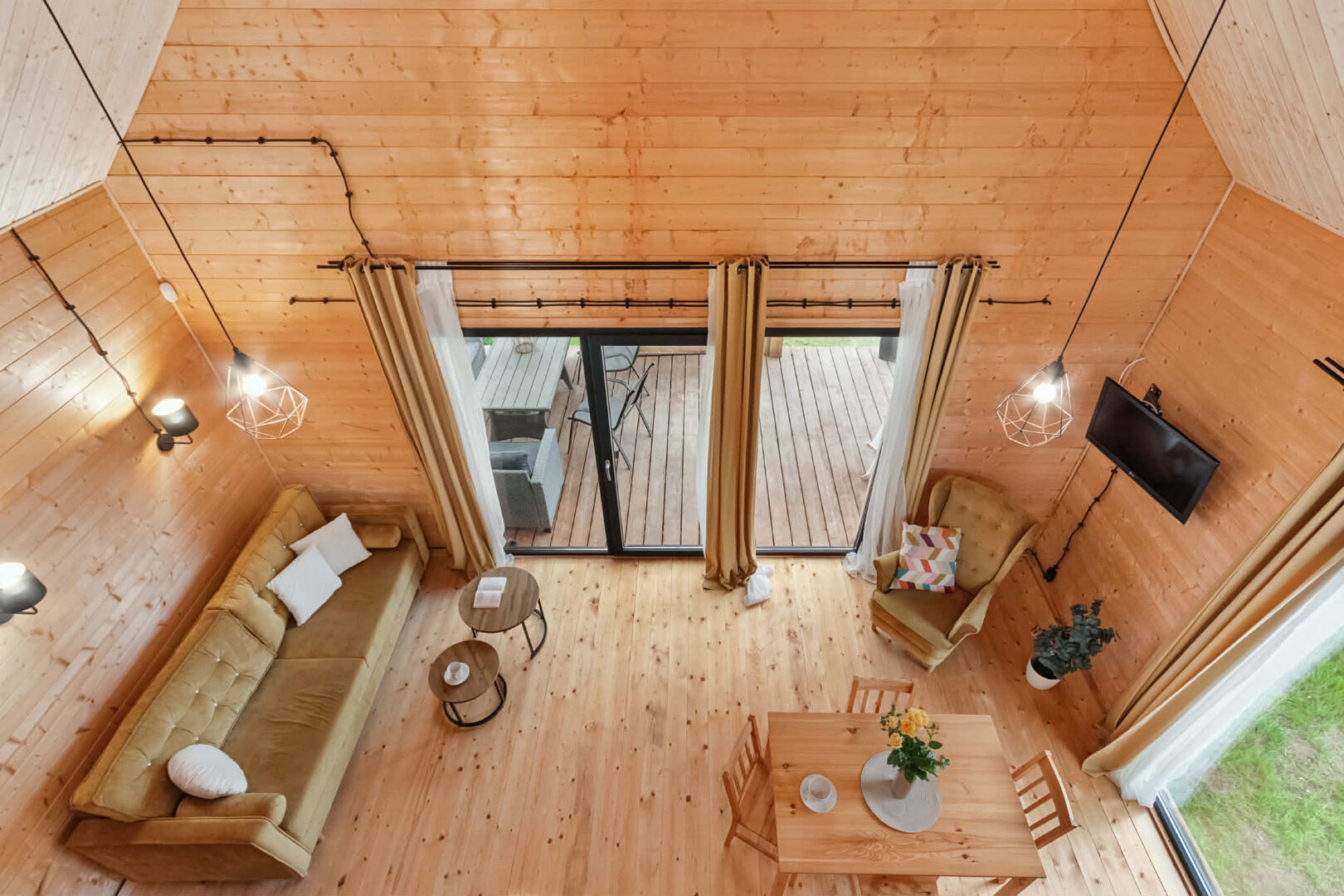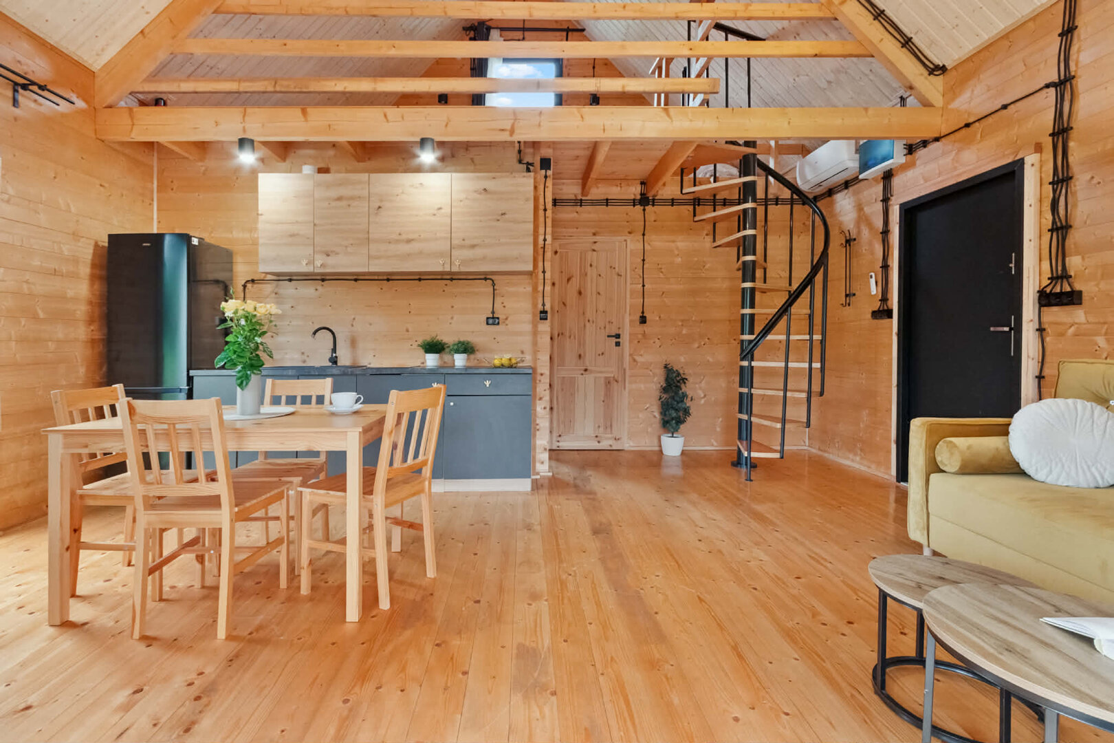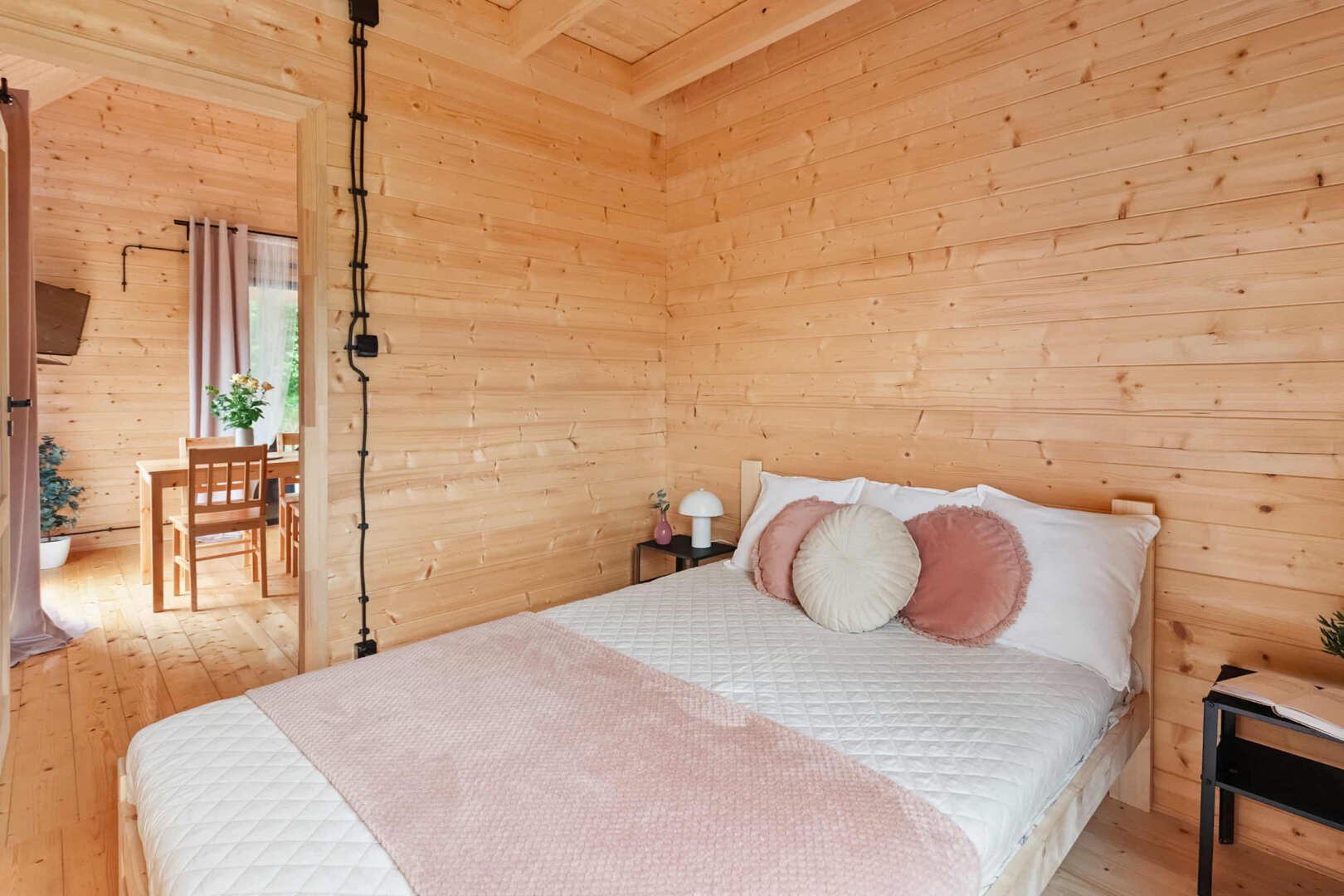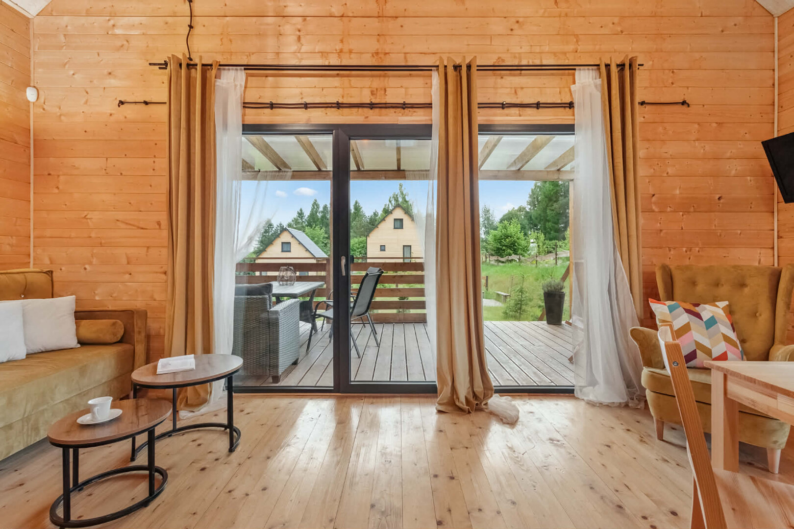 Każdy Domek jest przygotowany dla max. 6 osób i ma ok.55m2 plus taras wyposażony w wygodną sofę rattanową z dużym stołem. Parking w cenie oraz możliwość ładowania samochodów elektrycznych za dodatkową opłatą.